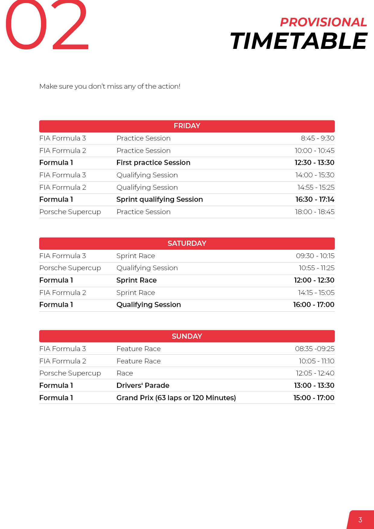 We currently offer standard three-day adult tickets (Friday to Sunday) for F1 races.